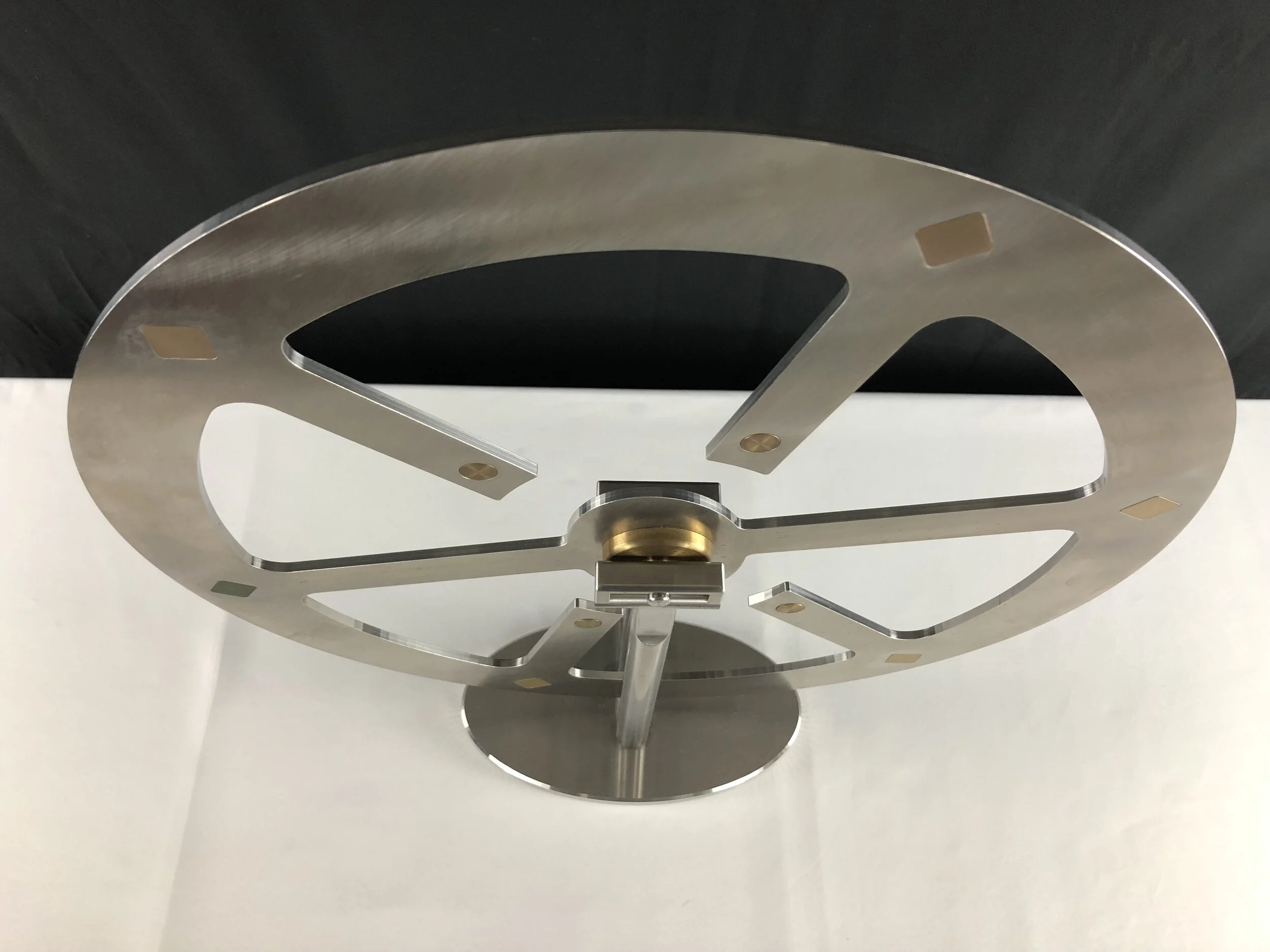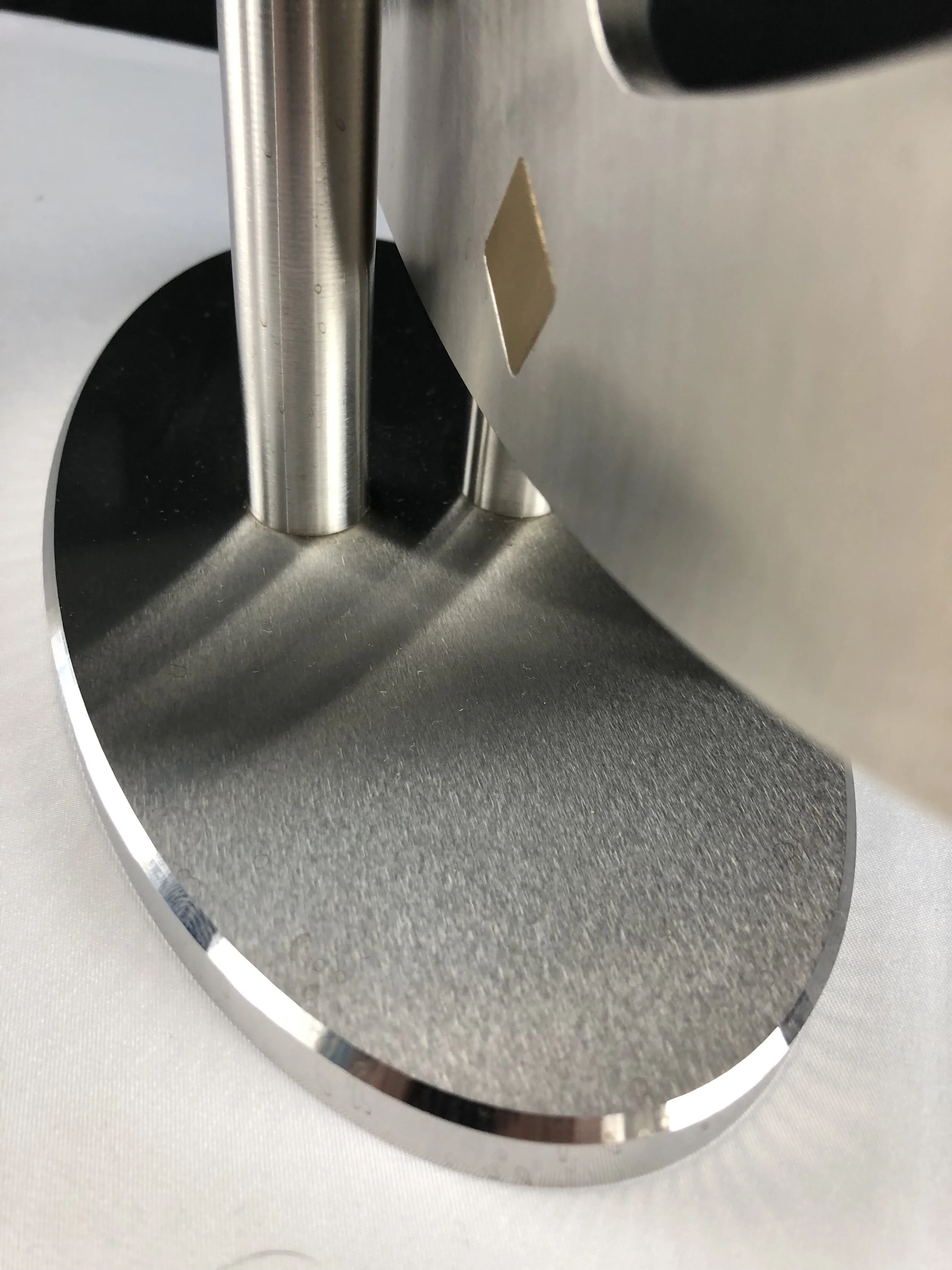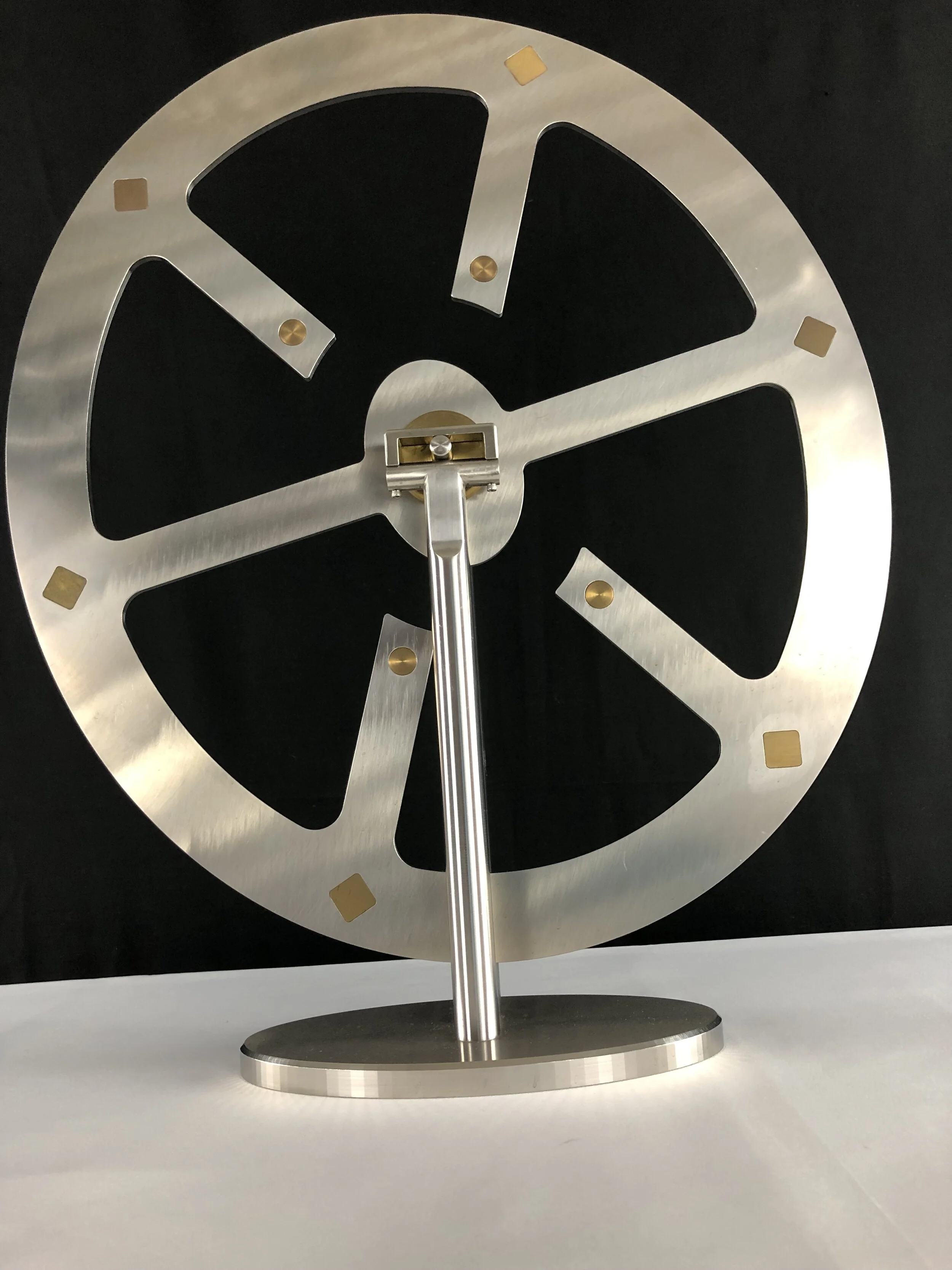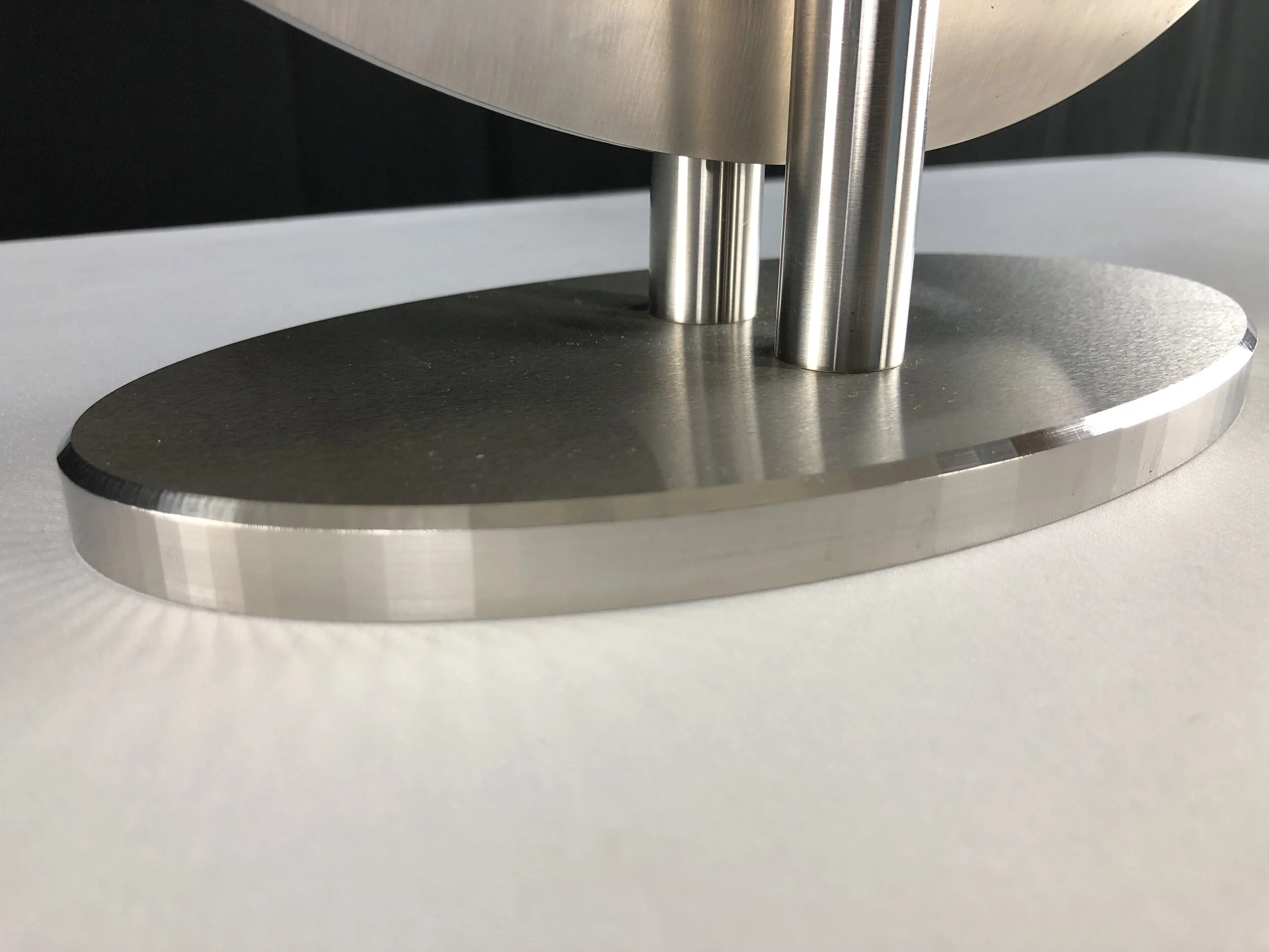 Be mesmerized by the light bouncing off the surface of Surreal II, with it’s polished, oval shape in 316 stainless steel with brass inserts.